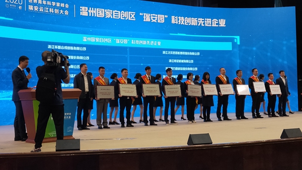 省委宣傳部副部長趙磊、省科技廳一級(jí)巡視員曹新安為溫州國家自創(chuàng)區(qū)“瑞安園”科技創(chuàng)新先進(jìn)企業(yè)頒獎(jiǎng)。獲獎(jiǎng)企業(yè)名單(10 家):浙江中特機(jī)械科技股份有限公司、浙江金龍自控設(shè)備有限公司、海尚集團(tuán)有限公司、浙江科騰精工機(jī)械股份有限公司、瑞立集團(tuán)瑞安汽車零部件有限公司、浙江華峰合成樹脂有限公司、浙江戈?duì)柕轮悄軕壹芄煞萦邢薰?、浙江希望機(jī)械有限公司、浙江新力新材料股份有限公司、浙江東新動(dòng)力有限公司。