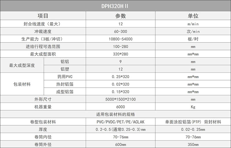 DPH320H全伺服高速輥板泡罩包裝機 參數(shù)表